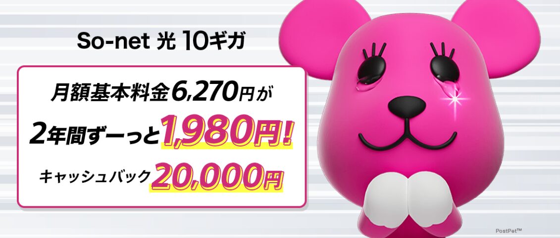 So-net 光 10ギガなら、最大10Gbpsの爆速回線が23ヶ月間ずっと1,980円で使えるキャンペーン中!